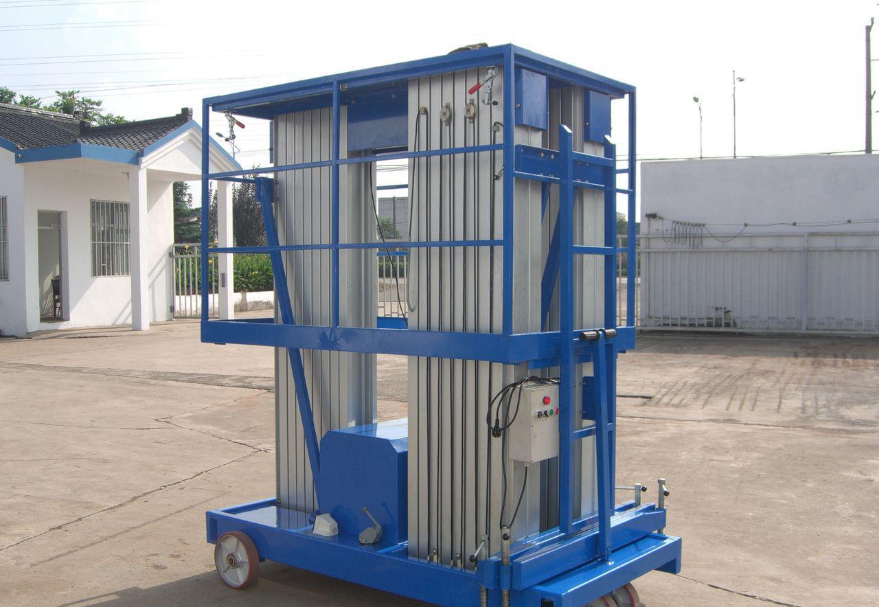 三柱铝合金升降平台采用整体升降式护栏装置,强度好,运输时大幅度地降低整机高度,装卸十分方便,通过一次升降即可完成装配或拆卸。该升降平台承载能力强,适合于两人(可携带一定的重量工具和材料)同时登高作业;还可根据不同环境订制成各种非标产品,以满足不同需要。
