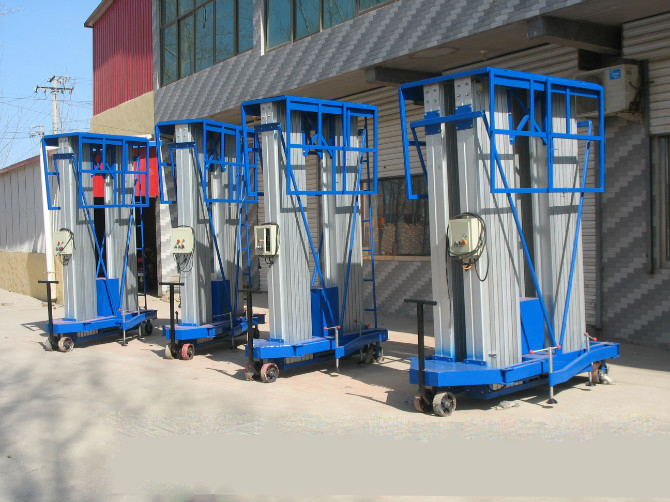 铝合金式升降平台采用高强度优质铝合金材料,具有造型美观、体积小、重量轻、升降平衡、安全可靠等优点,广泛用于工厂、宾馆、餐厅、车站、机场影剧院、展览馆等场所,是保养机具、油漆装修、调换灯具、电器、清洁保养等用途的最佳安全伴侣。